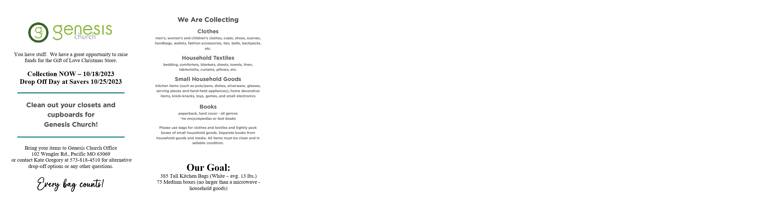 You can help raise funds for GOLCS by cleaning out your closets! Contact Kate Gregory, 573-818-4510 with questions.
